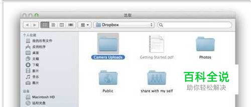 之后在Dropbok for Mac中选择“Camera Uploads”文件夹