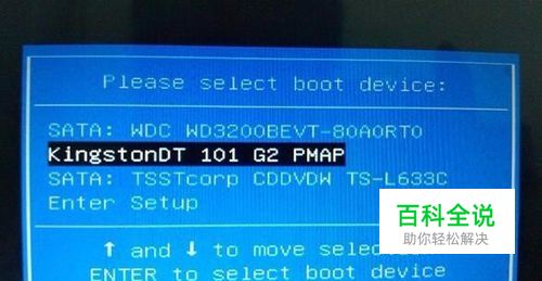 2、进入到启动项窗口界面后,使用键盘上下方向键选择启动U盘选项(注意:有的型号是显示U盘名,有的可以显示USB:开头),小编的启动项界面如下图所示: