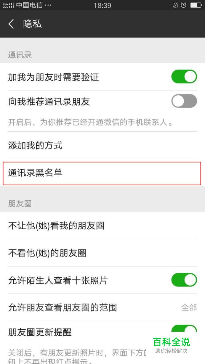 然后我们会看到【通讯录黑名单】,点击进入;