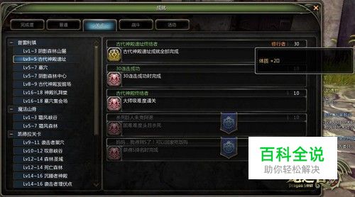 称号的获得 成就获取:除了金币物品奖励之外,部分成就还有特殊的称号奖励。例如在“古代神殿遗址”这个副本中,完成此副本中所有成就可完成额外成就“古代神殿遗址终结者”同时获得称号“修行者”,其附加属性为体质+2。当完成此成就后,称号自然激活。 任务获取:玩家达到一定等级后可接取特定的称号任务,此类任务多为系列任务且最后完成难度较大,但任务类称号多为可升级称号,即随着后续任务的完后称号的等级提升属性也会增加。 如任务“[斗士Lv1]战斗的基本是要有力量”,需要通关大师级“墓穴集会场”完成获得称号“斗士Lv1”,为可升级称号。
