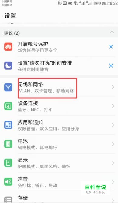 弹出的界面,我们点击无线和网络;