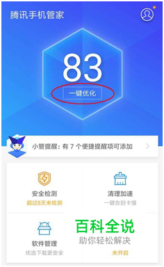 退出一项应用时习惯直接返回主页面,其实这样程序并没有关闭,而是在后台继续运行。这会占用手机CPU及运行内存,如果后台程序多的话,手机就会出现卡、慢的现象。 解决方法:借助腾讯手机管家智能评分点击“一键优化”,可以进行手机垃圾清理并关闭后台进程,释放内存空间。另外手机管家优化内存的同时还具有安全检测及防护功能,可以对网络环境、系统漏洞、病毒木马、支付环境等有一个全面的监控,进一步确保手机流畅、安全。