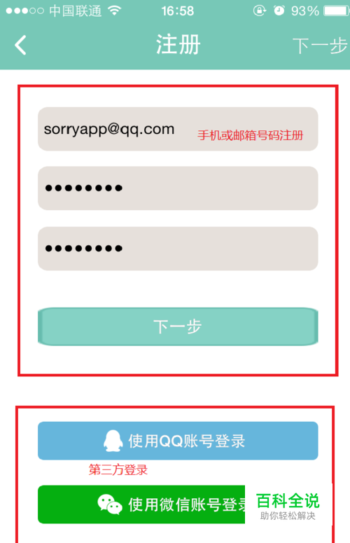 2、注册时可以选择两种,一种是手机或邮箱号码,使用邮箱号码或者手机号时需要获取验证码,收到验证码填写后点击下一步; 另外一种就是使用第三方登录,如QQ/新浪微博/微信。第三方登录可直接点击QQ/新浪微博/微信链接登录;