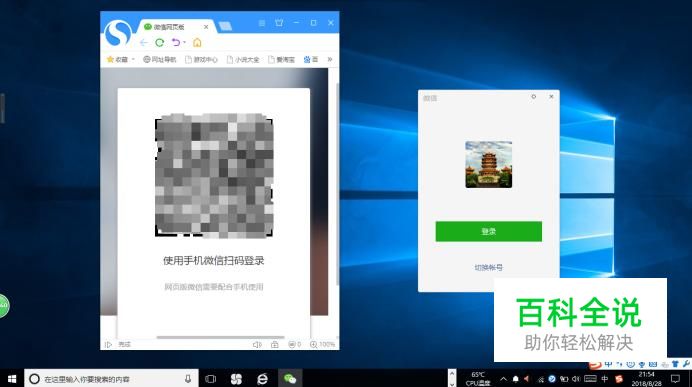 如图所示,唤出"微信"登录窗口。显示账号二维码信息,使用手机微信扫一扫确认登录。