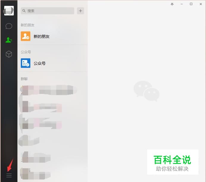 想要退出电脑版微信首先我们要点击微信左下角的三横图标。