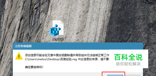 更为方便的方法是直接双击注册表文件,在弹出的信息框中选择,就会提示注册表已成功添加到注册表中,恢复成功!