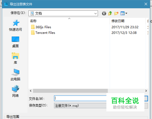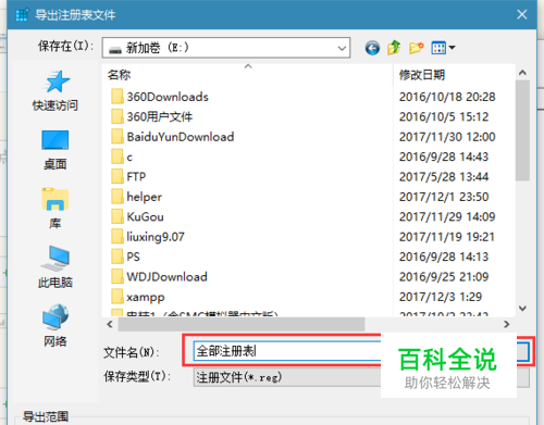 在弹出的导出对话框中,选择需要保存的位置,输入名称,点击保存,就能导出整个注册表了,备份完成