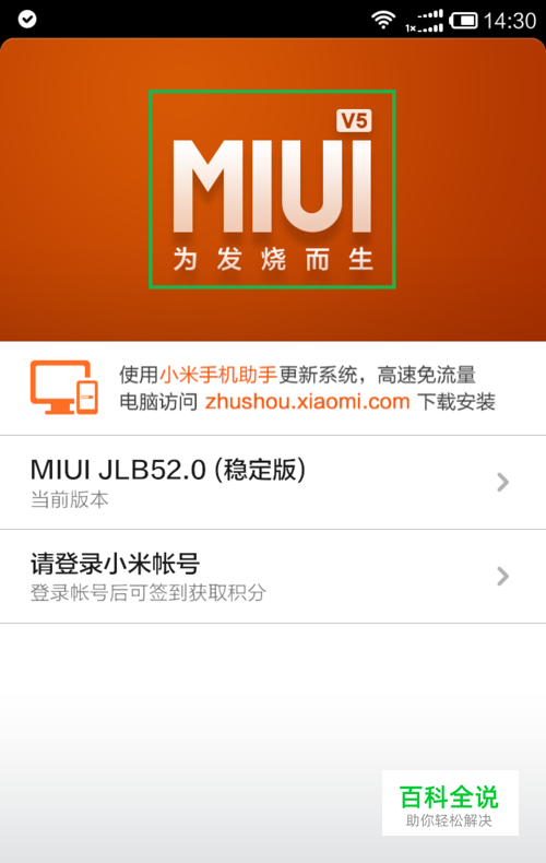 首先确认系统,此教程针对小米系统 V5 版本进行说明,其他参照操作但不能确保数序绝对有效。