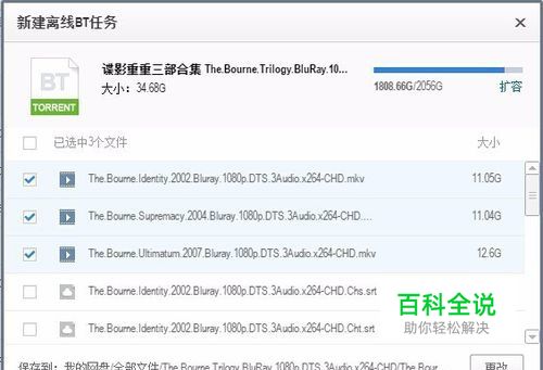 上传种子文件,然后选择要下载的内容,保存位置,点击“开始下载”。