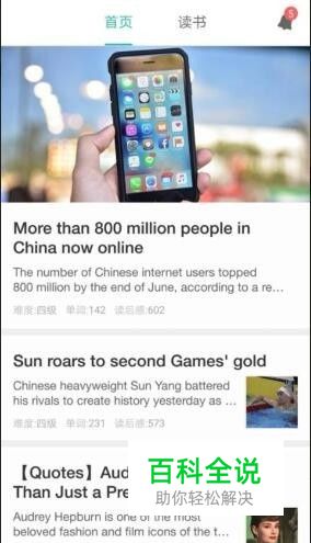 打开扇贝,可以看到当天更新的英语短文信息,可以点开进行阅读,最下方为界面切换按钮,点击最后一个,即我的。
