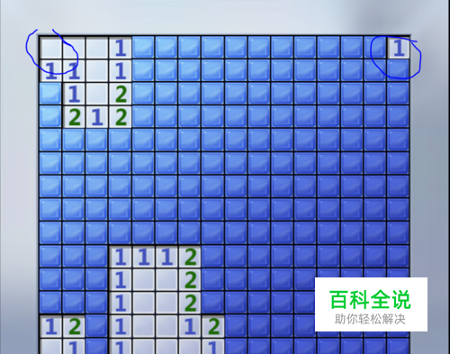 数字的意思如图,数字是1的话,就是在他的九宫格内有一个雷,图中数字1的所在九宫格只有一个没点开,那么没点开那个一定是雷,右键标记上。