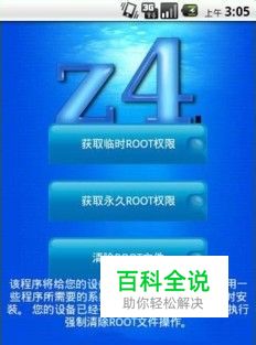 首先需要下载z4root的安装包并且通过类似于安卓驱动的手机同步软件安装到手机之中,点击运行之后会跳转到如下界面。
