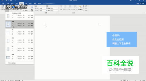 点击“自定义边距”,自由调整上下左右页边距,点击“确定”即可。