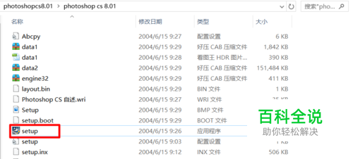 首先我们在网上下载 Adobe Photoshop 8.0 。 解压你下载的文件,然后双击打开setup.exe 。