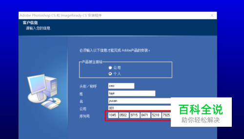 这里可以随便写,但是最后的“序列号”里输入软件的序列号(这就是注册) 输入:1045-0502-9715-8471-5218-7925 (不能粘贴复制) 完成后单击“下一步”