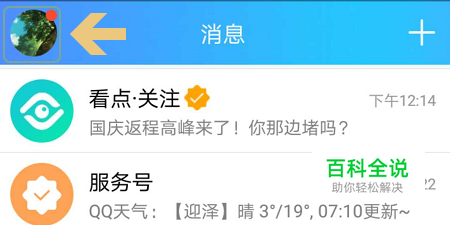 此方法仅适用于在手机端QQ软件上操作,如果是电脑则不适用哦,打开手机QQ以后,即可在软件的左上角看到个人头像,如下图;