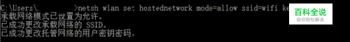 方法二:cmd命令行。网上也有说win10用命令行成功的。 搜索框框里面打cmd,然后管理员身份运行。写入以下代码: netsh wlan set hostednetwork mode=allow ssid=wifiname key=wifikey 其中ssid=后输入你想显示的wifi名称,key=后面输入你想设定的wifi密码 然后会有如下显示