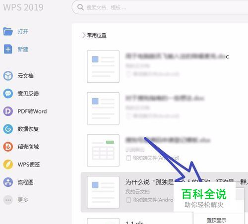 首先我们打开wps office2019,在主界面找到我们想要转换的文档,点击鼠标右键下载并打开,如下图所示,