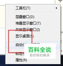 第一种:在任务栏上面右击,点击启动任务管理器。这种方法是最简单的,但是如果有时候电脑已经完全卡住了,这种方法就没法实现了。这就需要第二种方法。