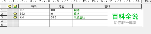 点击左边浏览条里的符号表,进入符号表界面,输入符号、地址和注释。如图所示