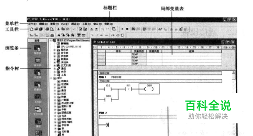 点击左侧程序块按钮,点击指令树里的位逻辑指令(或使用快捷键),选择常开指令,常闭指令以及置位指令