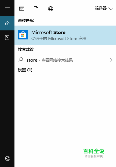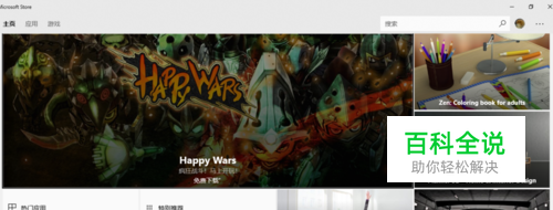 我们打开应用商店,如果找不到就使用快捷键win+Q,启动搜索框。在搜索框内输入store。