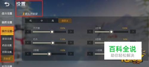 镜头灵敏度指的是你开镜瞄准时,镜头移动速度的快慢 灵敏度越高,则移动速度越快 灵敏度越低,移动速度越慢 镜头灵敏度的设置并没有绝对的标准,主要还是因人而异,根据自己的操作习惯来进行设置,但要遵循的一个原则就是低倍镜的灵敏度要高于高倍镜