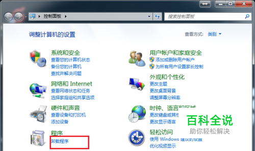 第一步在我们的电脑里面打开控制面板,点击程序下方的卸载程序,如下图所示: