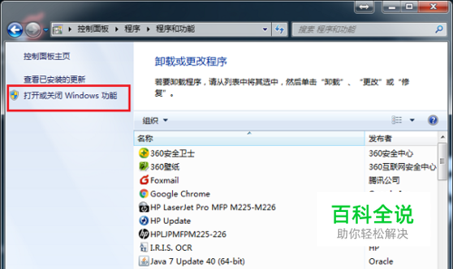 第二步进去程序和功能界面之后,点击打开或关闭windows功能,如下图所示: