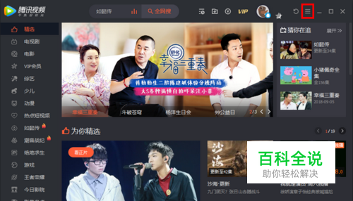 首先,打开腾讯视频的主界面以后,点击右上角的三条横线。