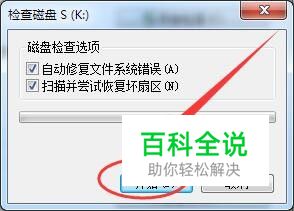 检查磁盘窗口中,单击开始检查修复SD卡。