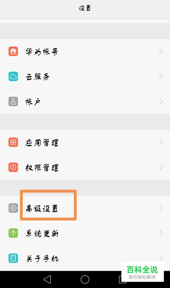 华为手机打开“设置”程序,选择页面处的“高级设置”。