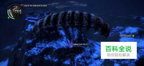 拿回PDA后,就能继续朝降落预定地飞行(Landing Zone),即将到达陆地前可以按下手把A键开伞,再按一次手把A键则是能即时收伞,回到飞行冲刺的状态。成功着陆后便进入教学关卡(第一个探员任务)。