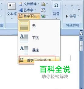 Word2007中怎么将段落第一个字设置首字下沉