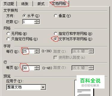 下面我们开始着手进行学习! ①打开“页面设置”对话框,切换到“文档网格”选项卡