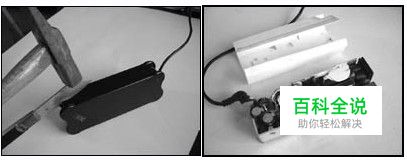 把电源适配器横向侧放置在白纸上,用电工刀刀刃沿电源适配器上下盖之间的缝隙切入,然后用锤子敲击电工刀刀背(如图1),使电工刀从适配器上下盖之间切进去。在适配器上下盖之间的缝隙的不同位置,用电工刀的刀尖沿缝隙划动,当上下盖的某一部位首先裂开后,把刀尖深入,然后慢慢分开适配器的上下盖。