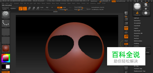 利用遮罩删除物体的局部其实更多的是使用在生物体等不规则形体,比较灵活,你可以先遮罩区域(按住Ctr键直接在模型上绘制遮罩),然后,反选(按住Ctrl键,在视图区的空白区域单击鼠标左键)。然后选择visablity面板中的hidept。