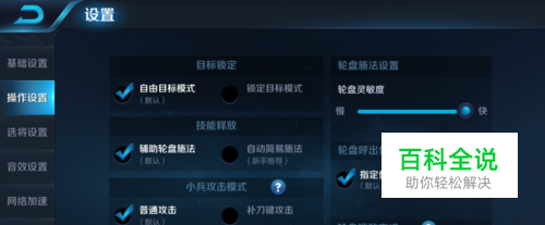 2,辅助轮盘施法:熟练的玩家必选的操作方式,可以在第一时间内释放所有技能将伤害打在目标身上。选择了辅助轮盘施法,还能选择灵敏度和轮盘位置,达到一种随心所欲的效果,极度方便。