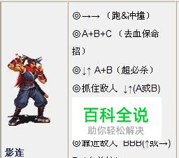 必杀的基础连续技 bbbabbba bbbabbaba bbbabaaba bbbbbaaba bbbabbaaba (这个10连击比较帅一些) ◎ 关于无限连击 把敌人打到空中,→→结合B就可以了;但是在版边和对boss无效。