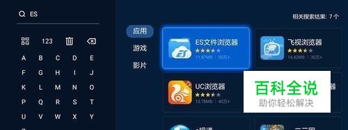 具体方法步骤如下: 打开智能电视(或电视盒子)里的沙发管家或当贝市场,搜索“ES文件管理器”下载安装(如果没有沙发管家和当贝市场,可以百度搜索下载到U盘安装)
