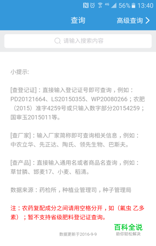 然后进入这个界面,目前一般都可以查的,只有省级登记的肥料不能查(因为大部分没有联网)。商品名尽量少用,有的登记时没有标注商品名称可能会查不到。