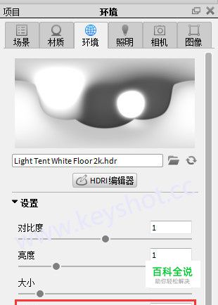 方法二: 控制灯光照明环境领域项目窗口中的“环境”选项卡中找到调整大小滑块调整大小。