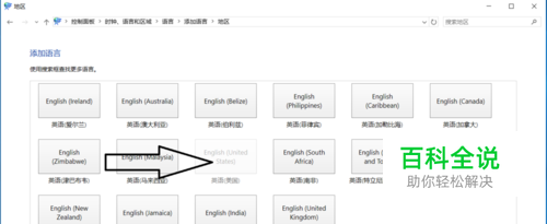 设置页面里选择“英语(美国)” ,并点击“添加”按钮;