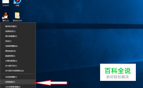 右击“开始”按钮找到“控制面板”;(往下有另一个打开”控制面板“的方法)