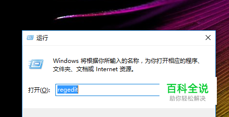 1. 使用 Win + R 组合快捷键,打开“运行”,然后键入打开注册表命令「regedit」,按回车键确认打开。 如图所示: