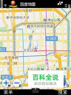 百度手机地图的主界面主要是由搜索、菜单和地图显示构成,在地图界面中,用户可以通过键盘上“*”和“#”来放大、缩小地图。而在下方菜单栏只要按“OK”键即可调出。