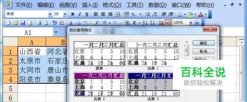 这时在弹出的“自动套用格式”窗口中,我们选择一种喜欢的格式,点击确定。