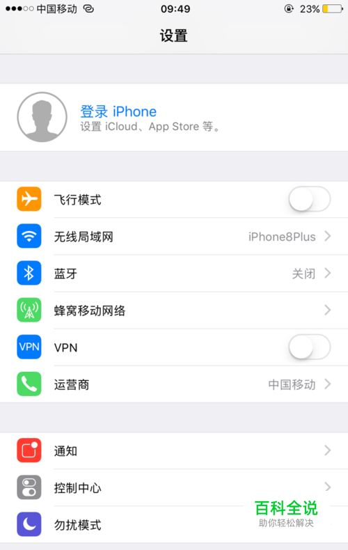 点击 “设置”进入到设置界面,可以看到列表第一项功能中有一行小字 “Apple ID、iCloud、iTunes与App Store”,如图