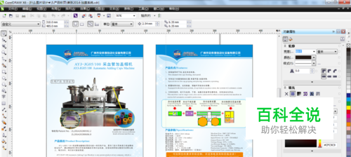 打开一个已经设计好的文件,文件主要由文字和图形组成。一键转曲线主要针对文字转曲,相当于将文字变成图形。