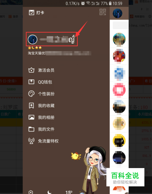 打开并登录手机QQ,点击昵称。